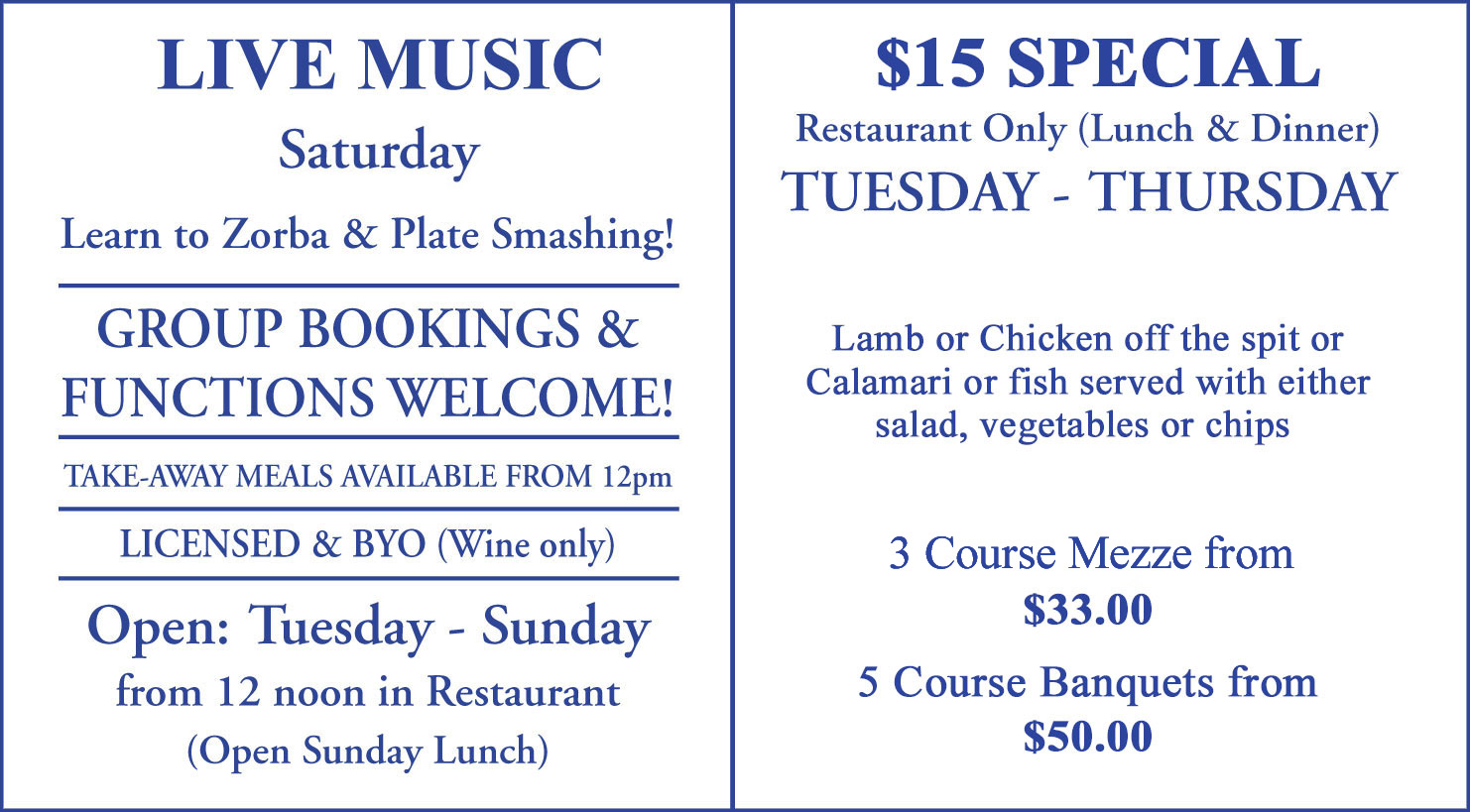 Nikos Tavern offers Greek Food takeaway in eastern suburbs. We have a simple and extensive menu for takeaways. We even have vegan and gluten free options.